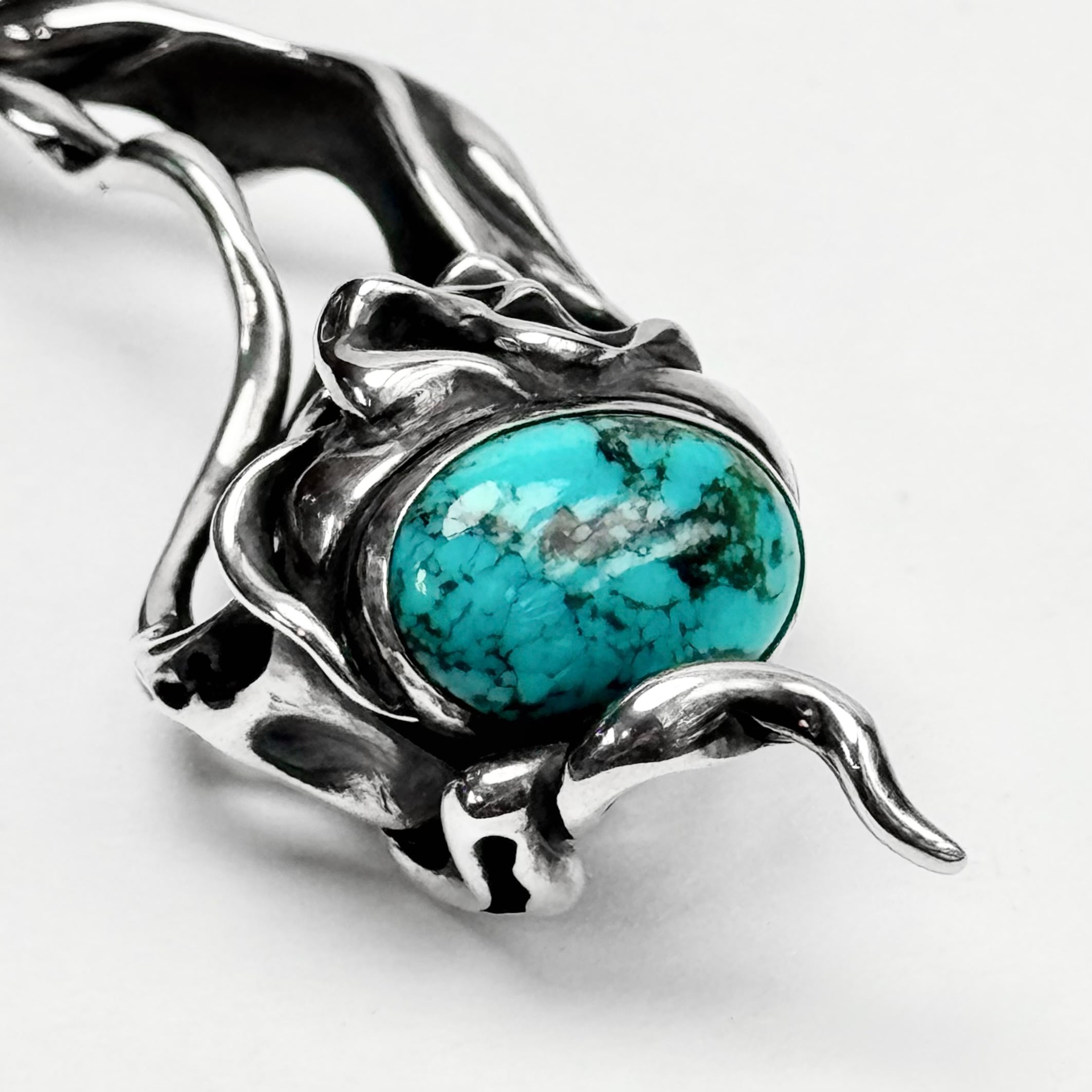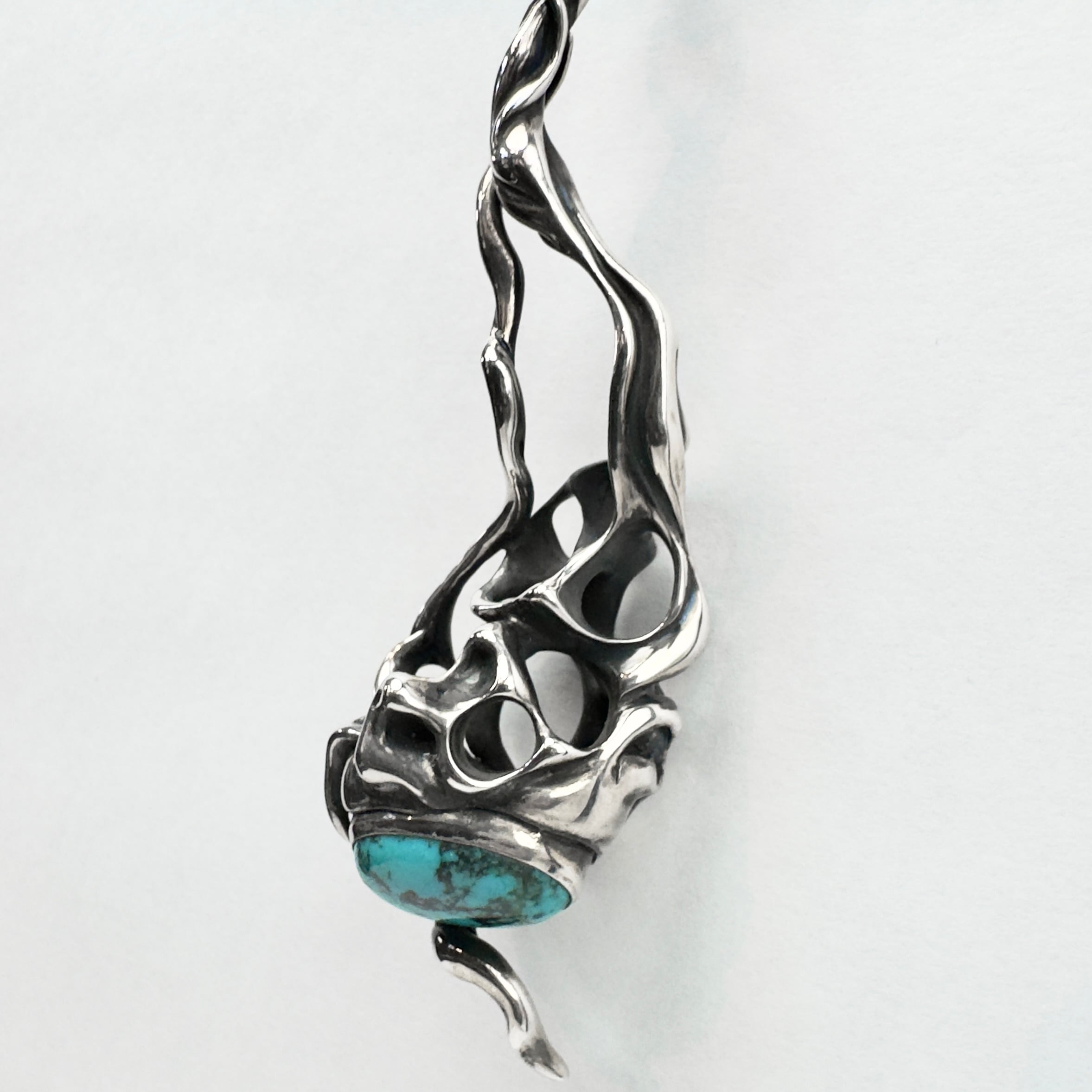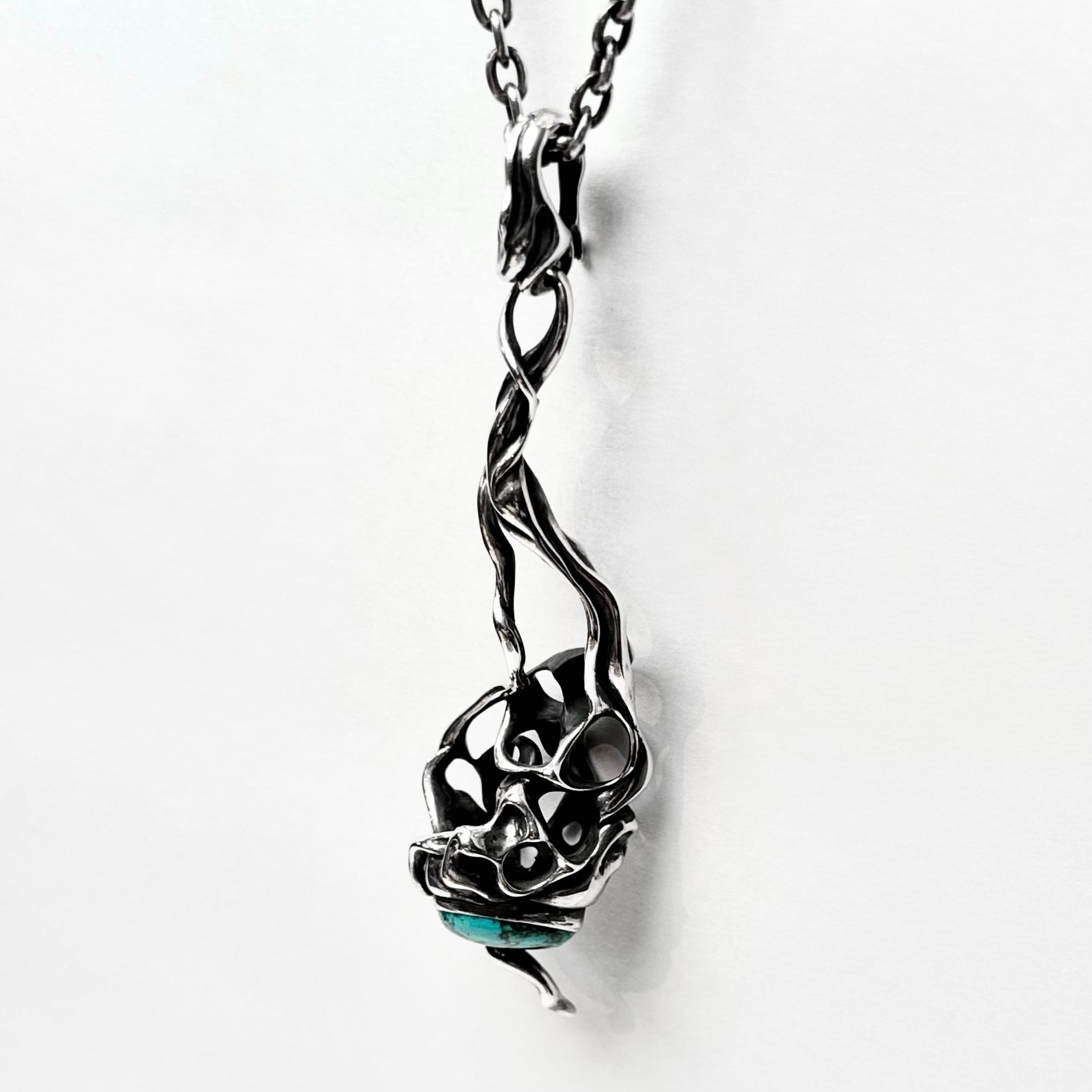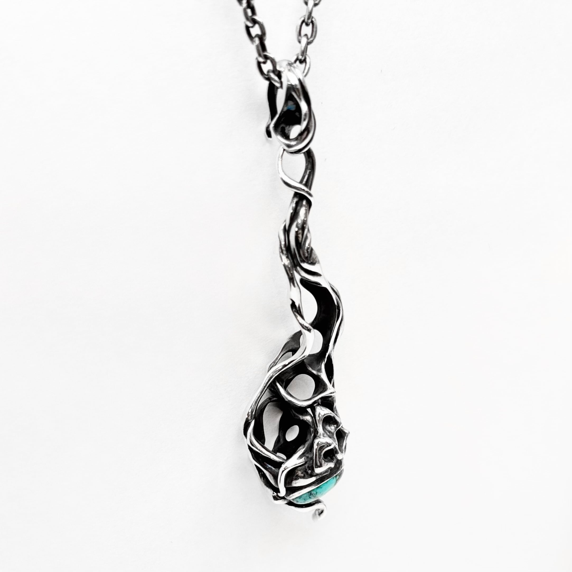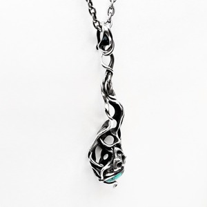 "脈"をモチーフにアイテムを生み出すTAUJANのターコイズを下部にあしらったペンダント。