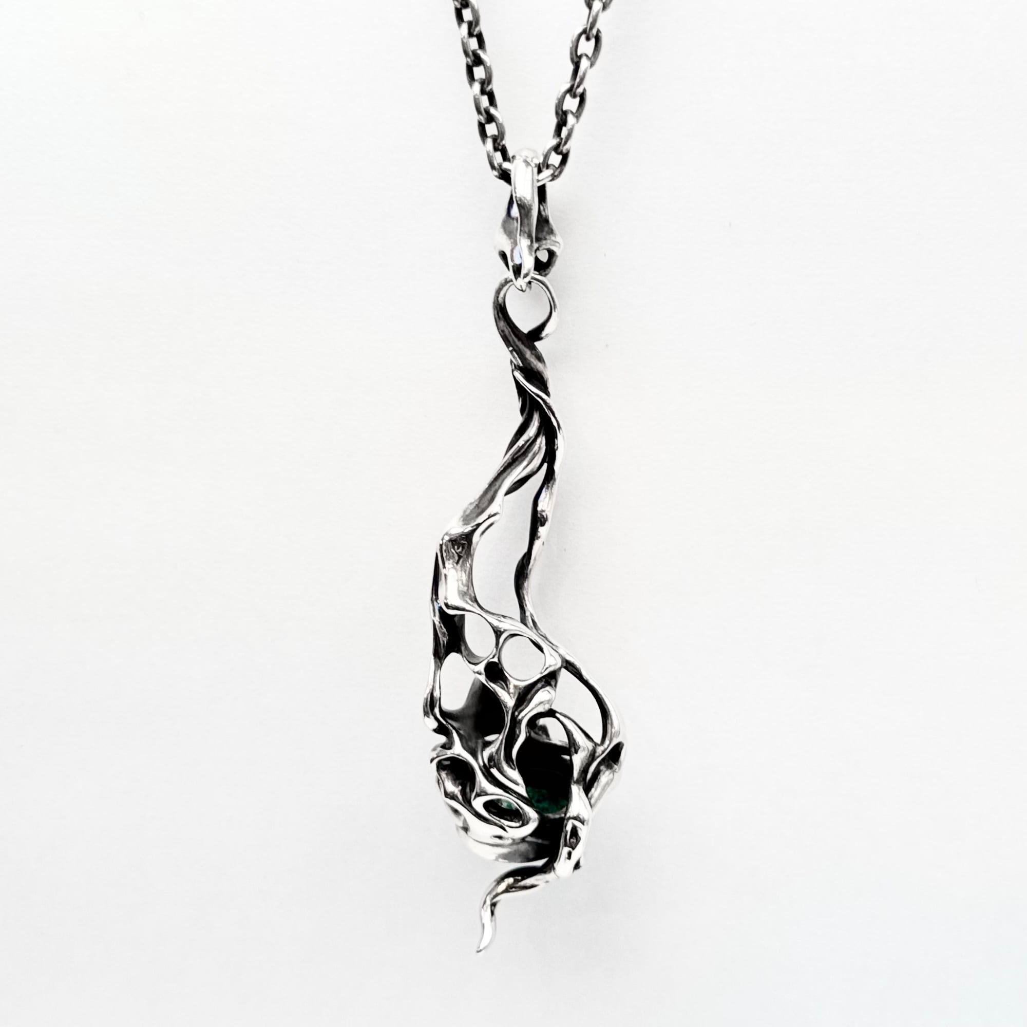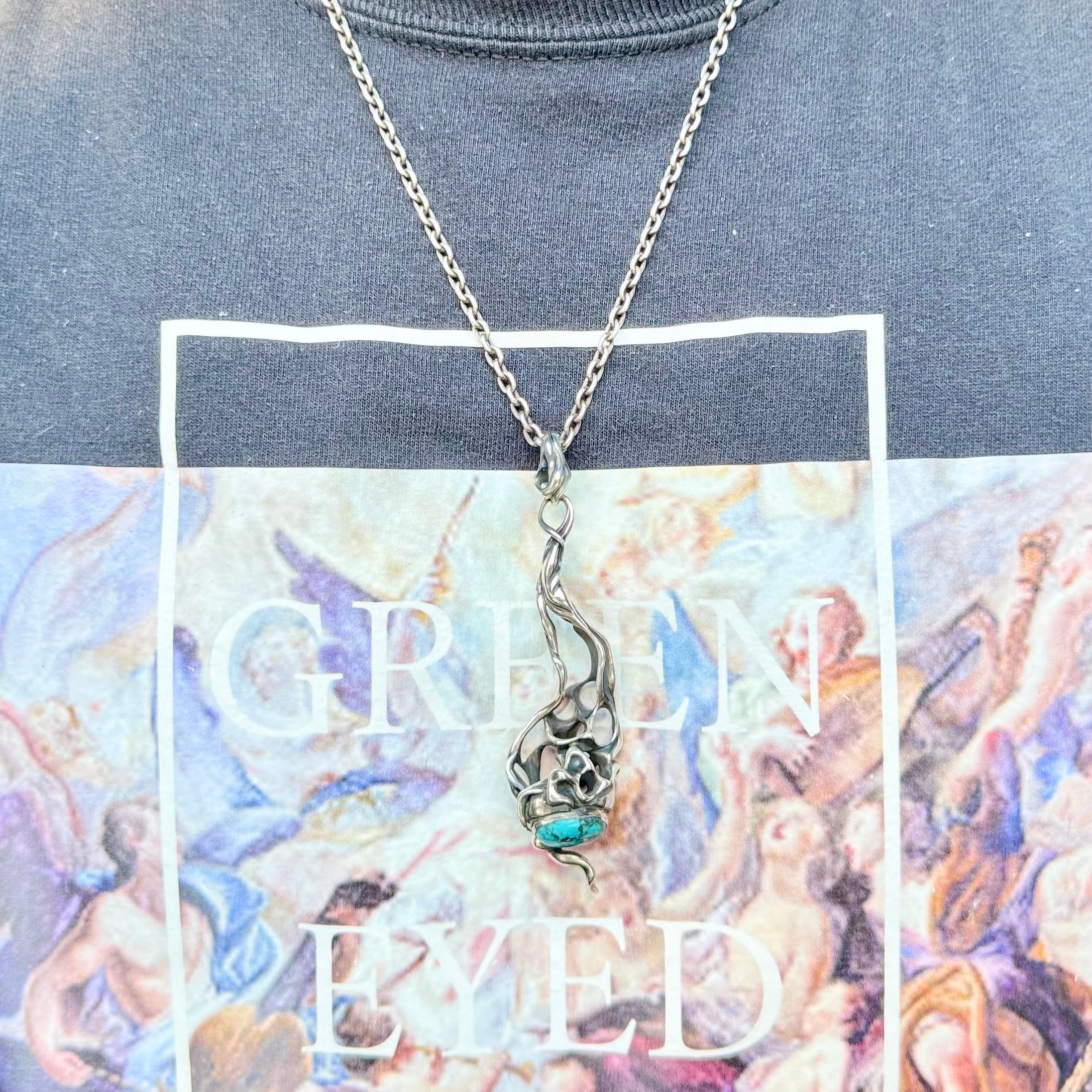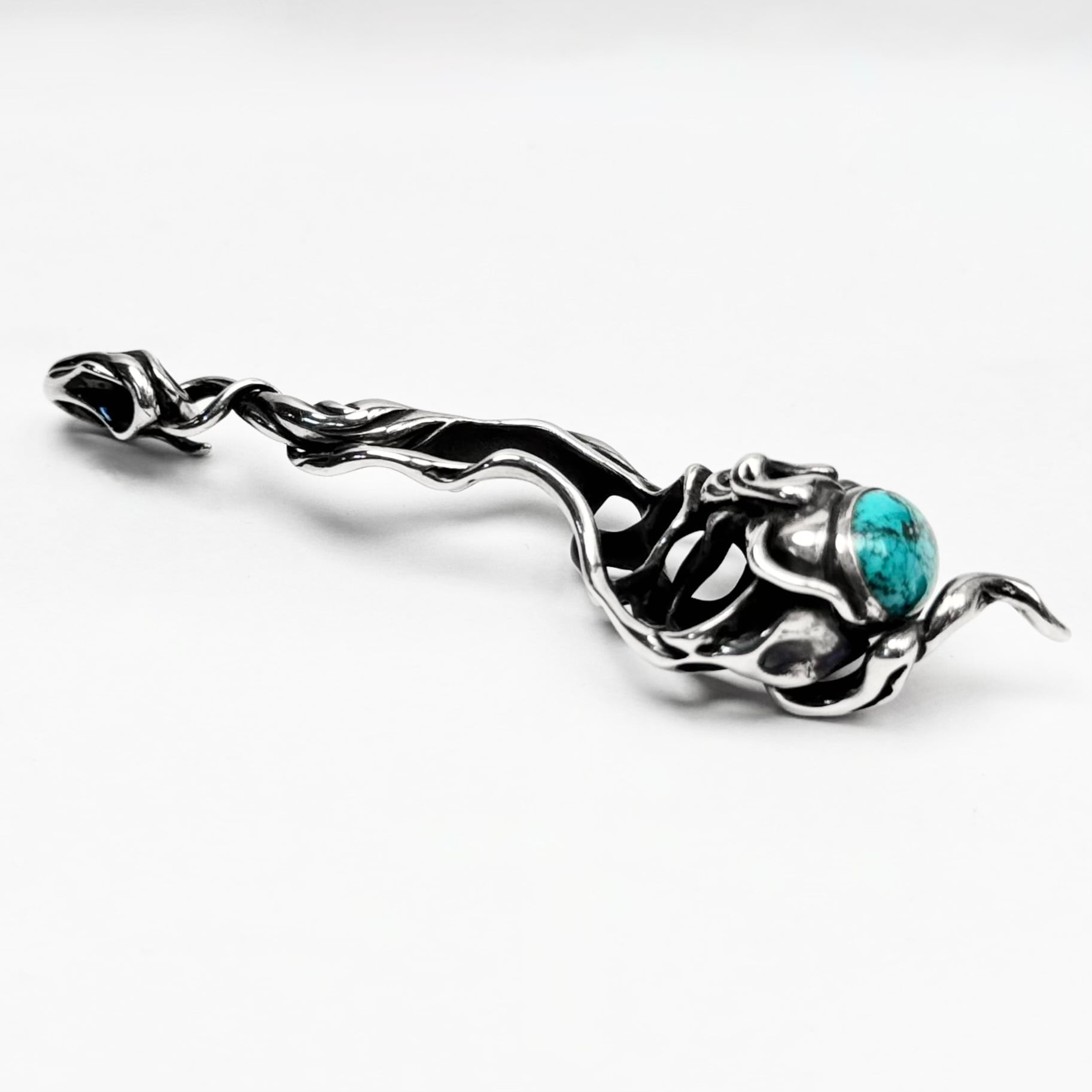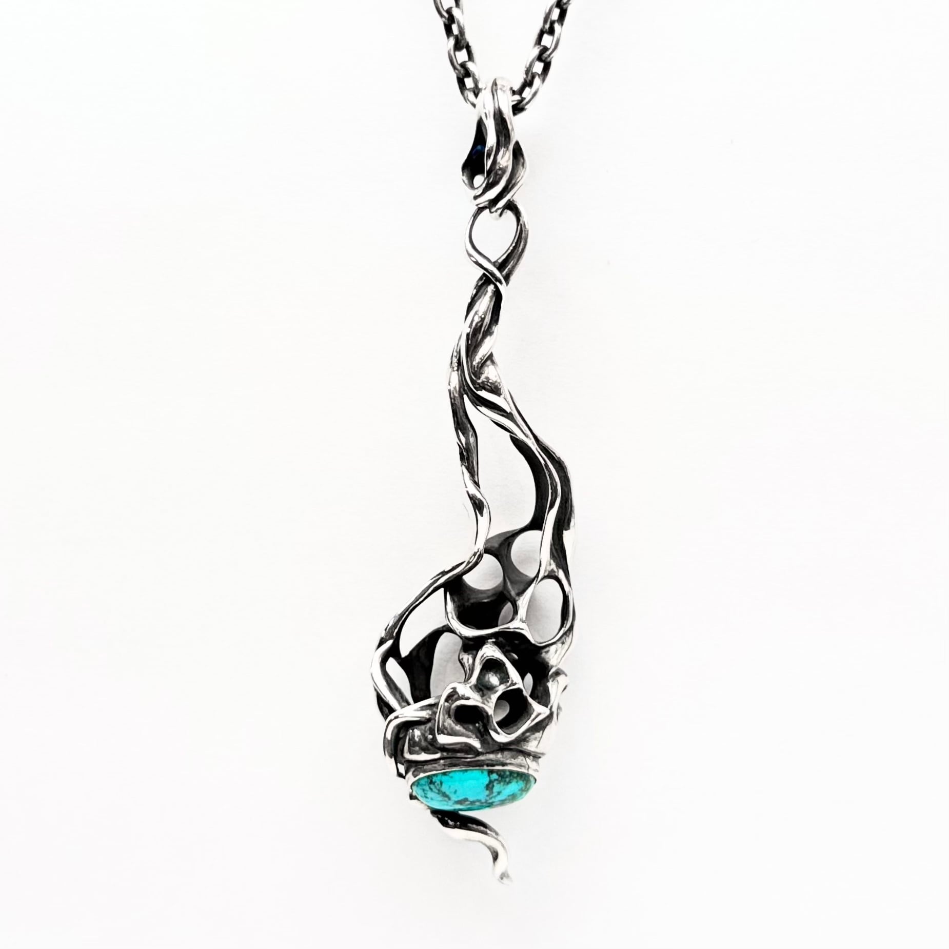 "脈"をモチーフにアイテムを生み出すTAUJANのターコイズを下部にあしらったペンダント。