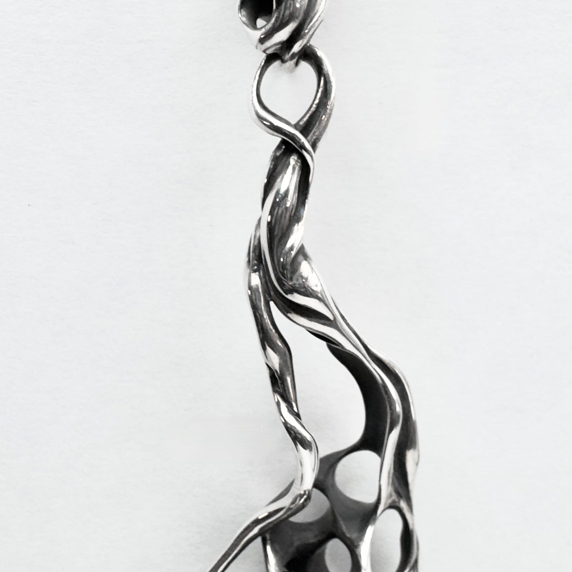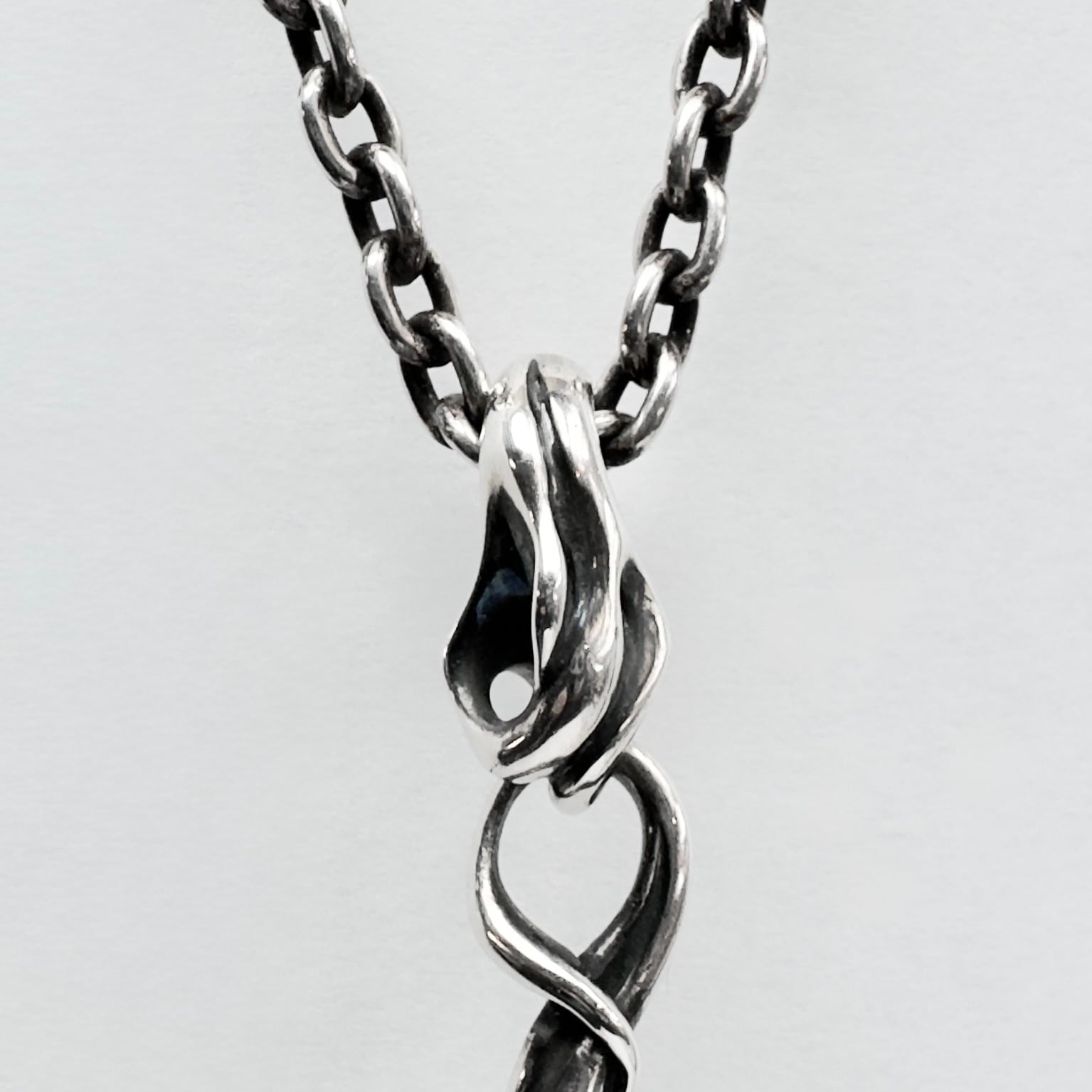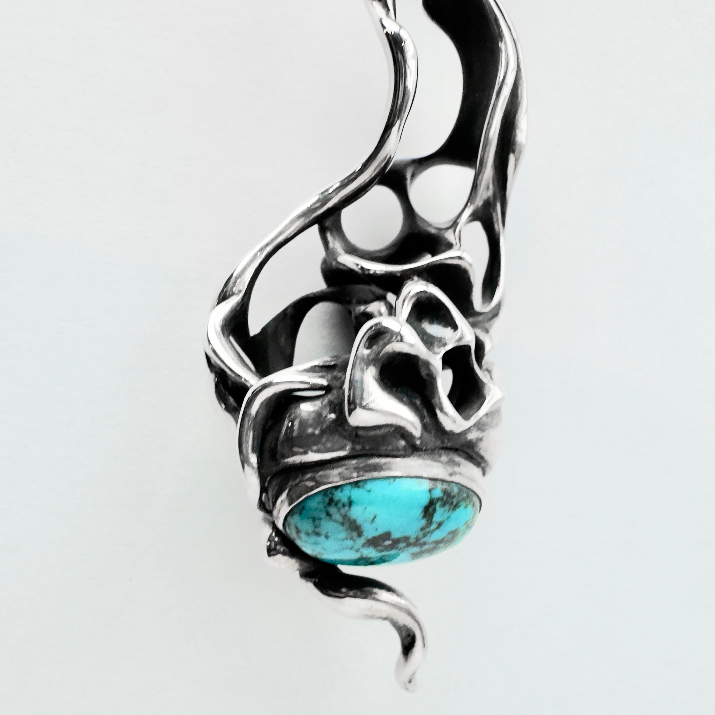 石を使用したものは基本石がメインになるようなデザインが多いTAUJANですが、こちらは下部にターコイズがセットされており、石ではなくシルエット全体がペンダントの主役としてデザインされております。