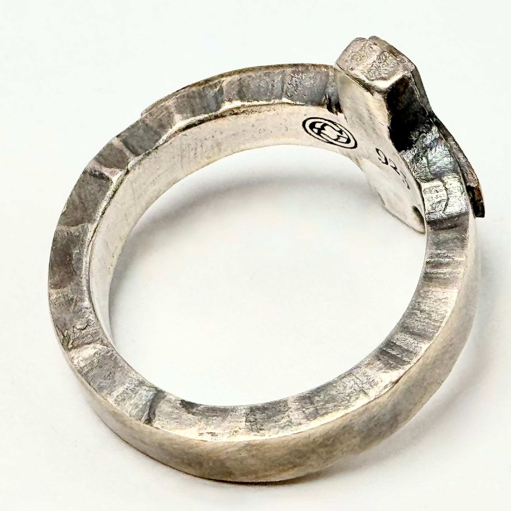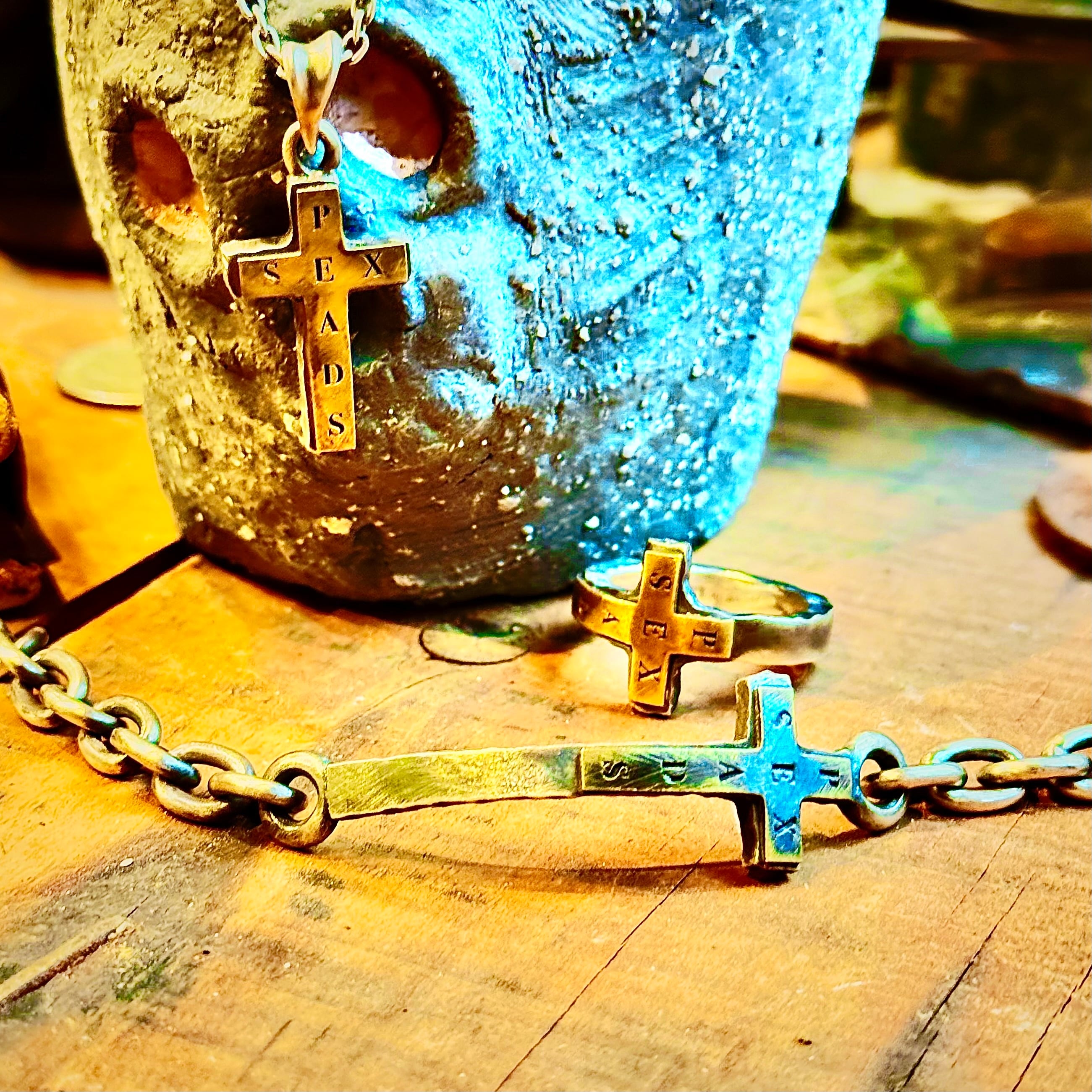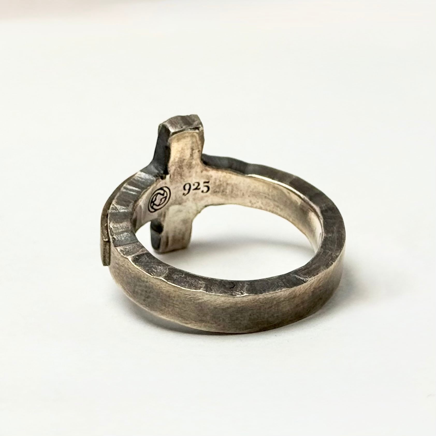 分厚いシルバーのクロスリングの上に真鍮のクロスプレートを溶接しています。