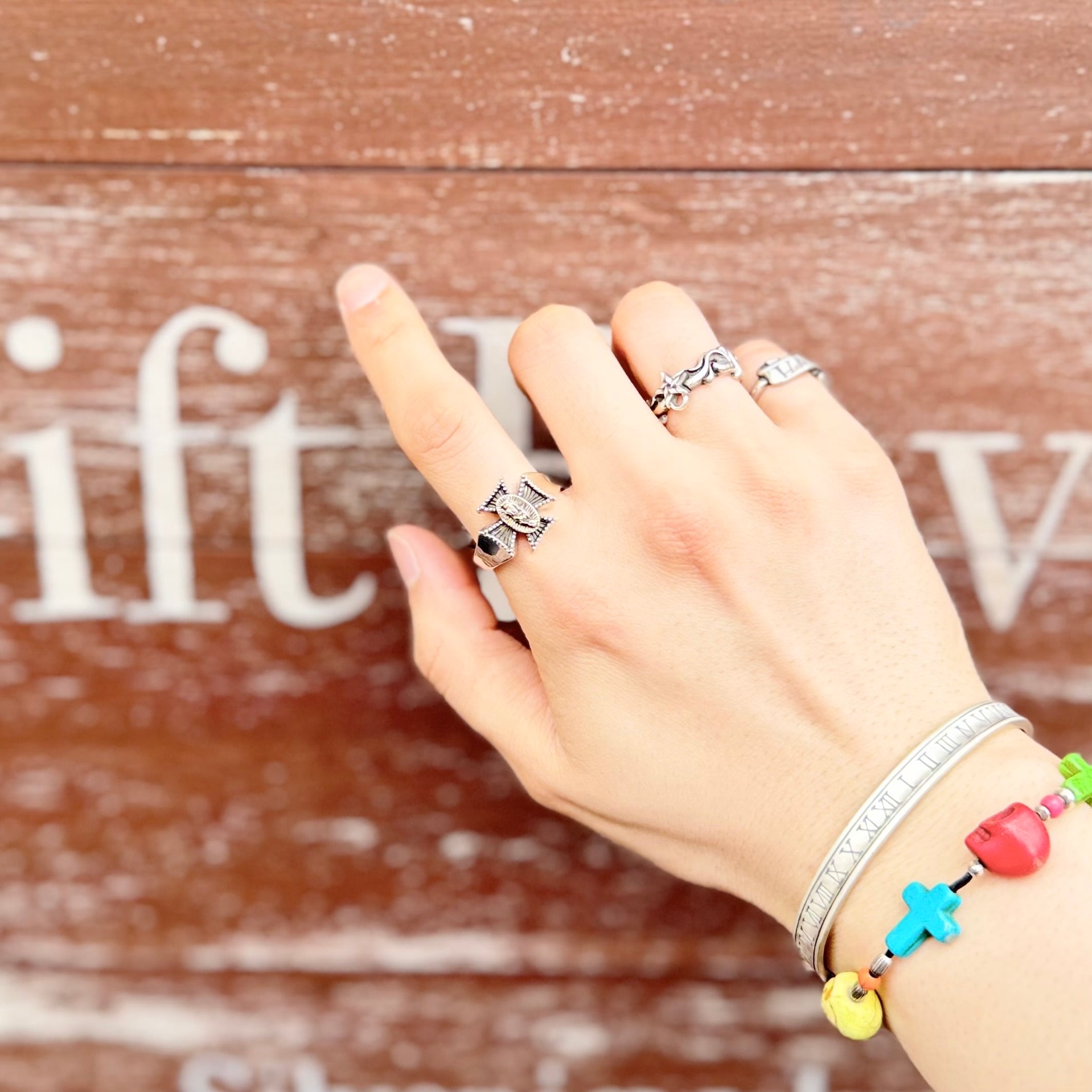 店頭展示品は21号ですがリング自体フリーサイズのため前後5号であれば調整可能ですのでサイズ変更をご希望の場合はご相談ください。