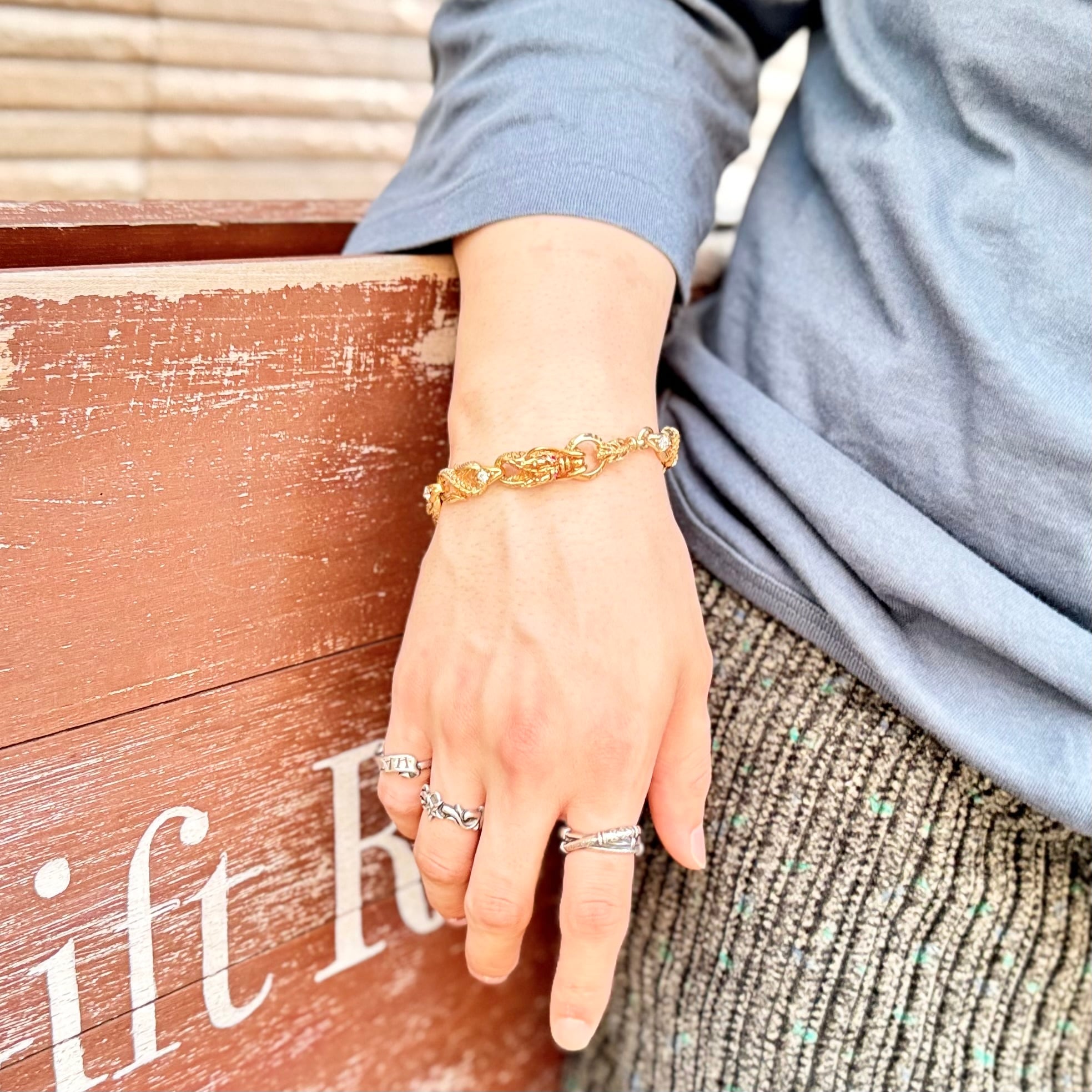 古風な龍をモチーフにゴールドコーティングを施したブレスレット。