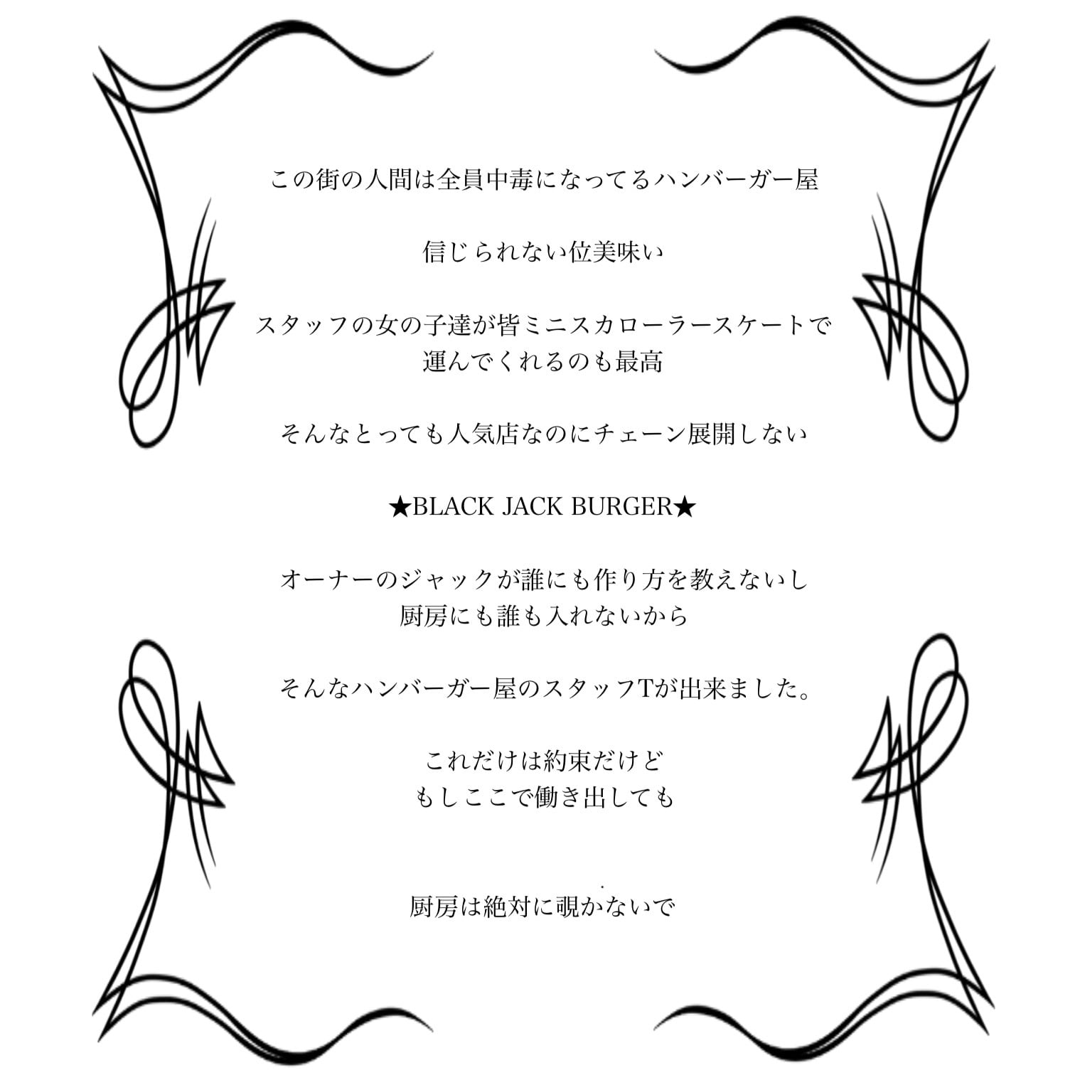 架空のハンバーガー屋のスタッフTシャツです。